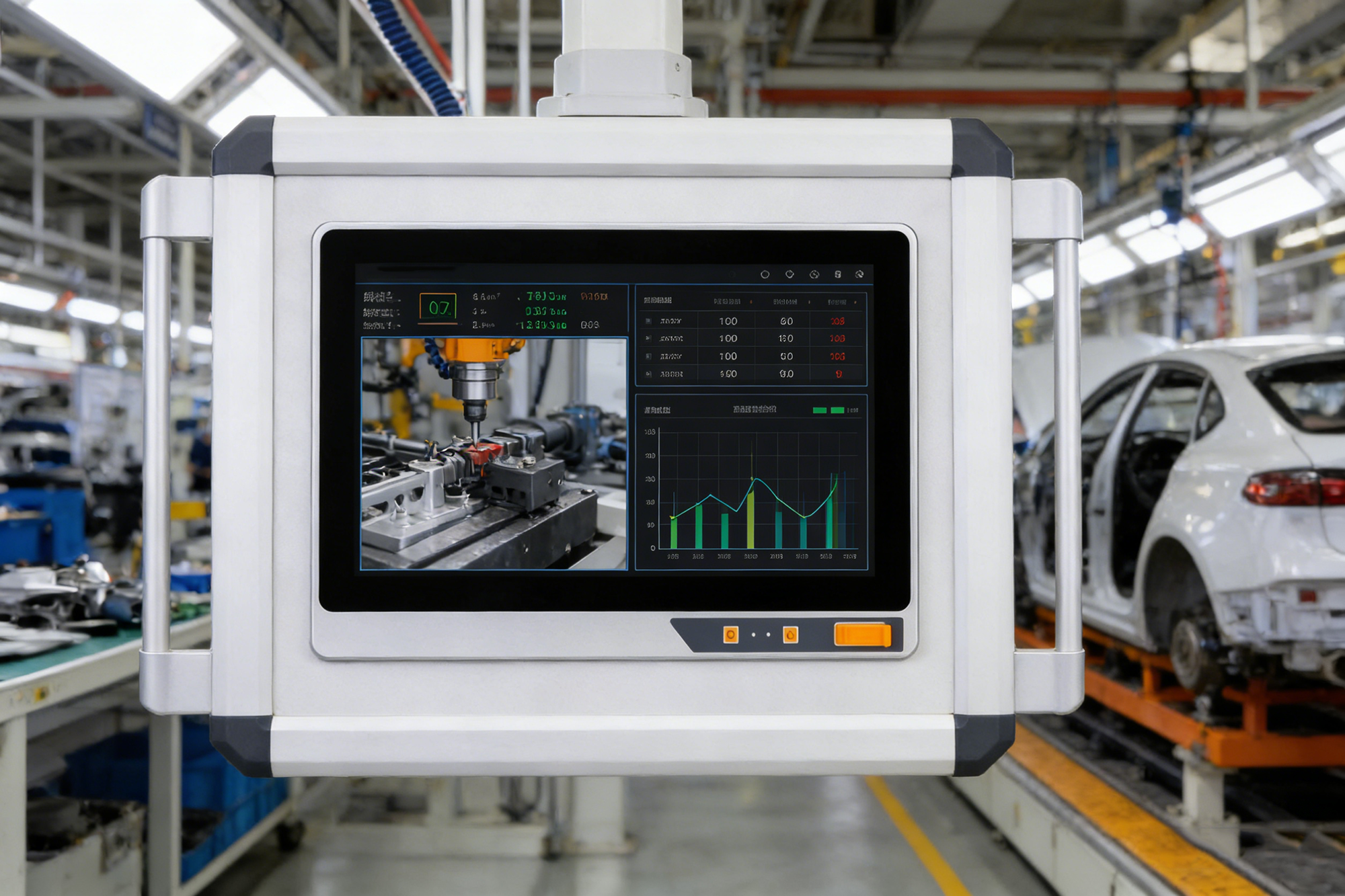 在汽車制造業(yè)邁向智能化的浪潮中,總裝車間作為整車成型的重要樞紐,承載著上萬個零部件的準確裝配使命,其工序復(fù)雜度與質(zhì)量管控要求堪稱行業(yè)標(biāo)準。從零部件核對到關(guān)鍵工序執(zhí)行,從數(shù)據(jù)記錄到質(zhì)量追溯,每一個環(huán)節(jié)都容不得絲毫差錯。而威嵌沃VFACE 15.6英寸I5 8代處理器工控一體機,正以硬核性能與靈活適配能力,成為汽車總裝線工位終端的理想之選,為智能化裝配與質(zhì)量管控注入強勁動力。